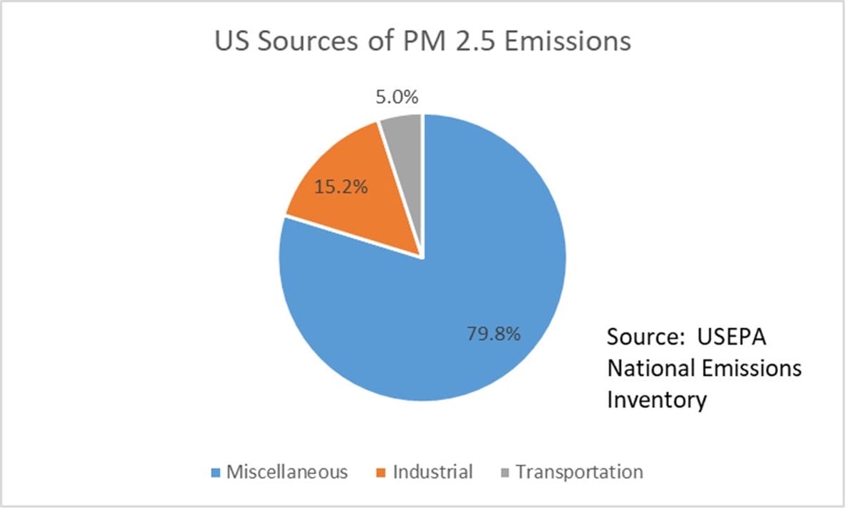 It’s also important to note that neither industry nor transportation sources contribute much to PM2.5 pollution any longer.